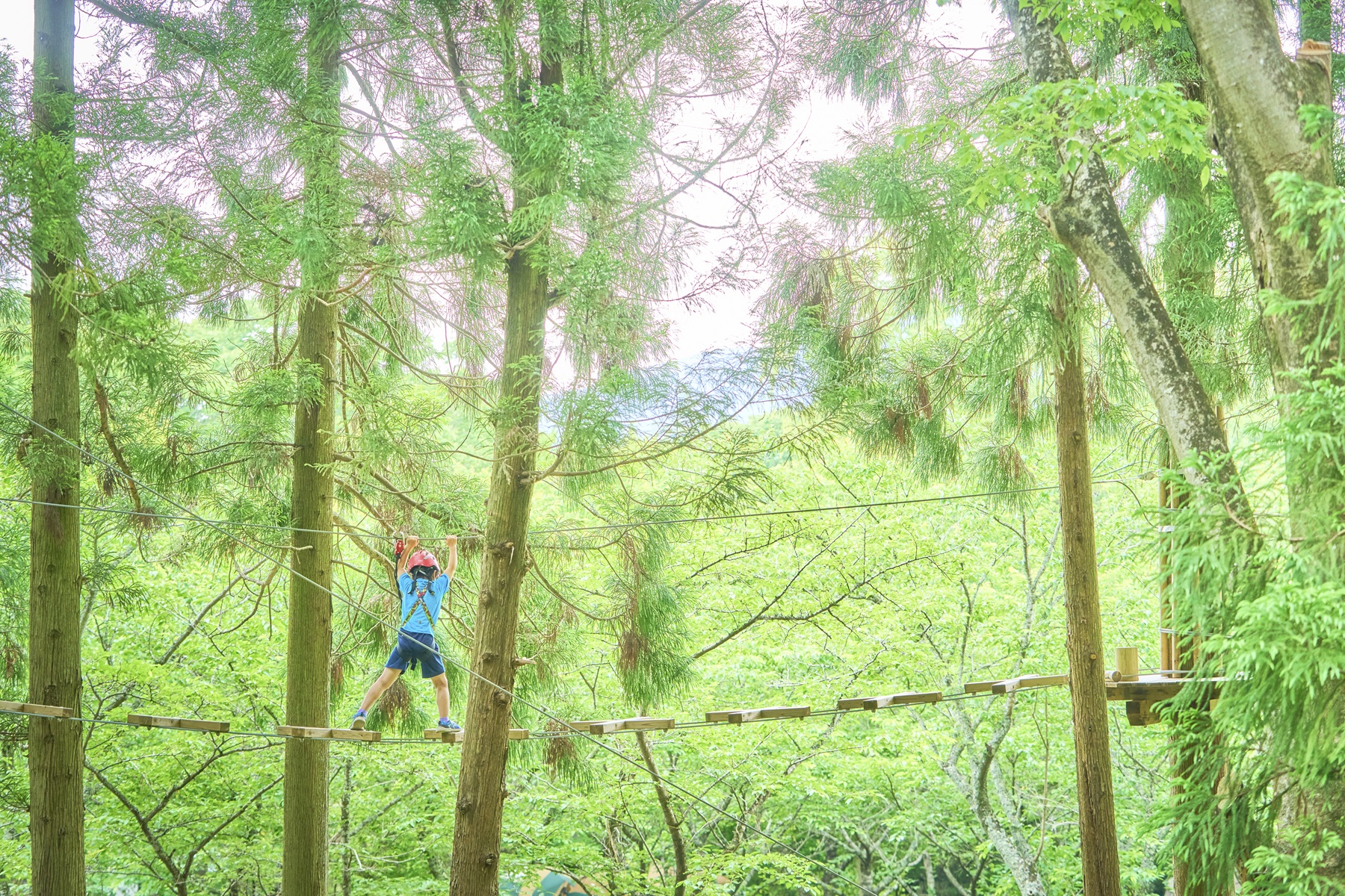 森の中を駆け抜けるジップスライドや本格アスレチックで、